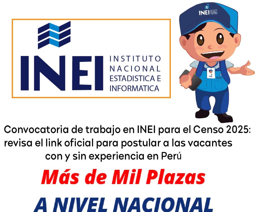 - INEI: Convocatoria Proyecto Censos 2025 Requiere 2211 Encuestadores entre otros.